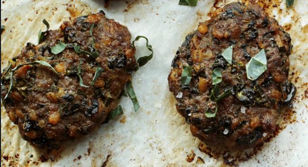 Kuumenna uuni 225 asteeseen. Kuori ja hienonna sipuli. Kuullota voissa ja siirrä jäähtymään. Hienonna mustakaalin lehdet ja meirami. Sekoita joukkoon jäähtynyt sipuli, (jäähtyneet) ohrasuurimot, kerma, siirappi, voisula ja mausteet. Lisää jauheliha. Sekoita ja anna tekeytyä noin 5 minuuttia. Muotoile massa pihveiksi leivinpaperin päälle uunipellille. Höylää päälle ohuet nokareet voita ja valuta päälle siirappia. Paista uunissa noin 15 minuuttia, kunnes pihvit ovat kypsät. Tarjoa puolukkahillon ja perunoiden kanssa. |