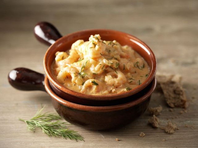 Ota katkaravut sulamaan (mielellään jo edellisenä iltana jääkaappiin). Mittaa voi ja öljy pannulle ja kuullota siinä hetki silputtuja salottisipuleita sekä chilisiivuja ja raastettuja valkosipulinkynsiä. Lisää sitten kuohukerma sekä tuorejuusto (tai ruokakerma). Anna kiehahtaa ja lisää sitten tomaattipyre sekä silputtu ruohosipuli, sekoita. Lisää lopuksi sitruunamehu ja katkaravut sekä rouhaisu pippuria. |