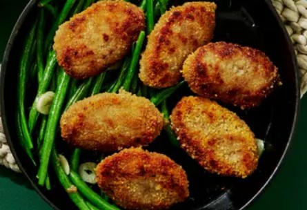 Kotletit![]() Ainekset: • 1 kpl sika-nauta jauheliha 23 % 400 g • 2 dl ruokakermaa • 0,8 dl korppujauhoja • 1 tl paprikajauhetta • 1 tl suolaa • 0,5 tl valkopippuria • 0,5 tl jauhettua maustepippuria • 2 rkl öljyä paistamiseen Leivitykseen • 2 dl korppujauhoja Ohje: 1. Sekoita sika-nautajauheliha, kerma, korppujauhot ja mausteet kulhossa tasiseksi massaksi. Massa saa jäädä tavallista lihapullataikinaa hieman löysemmäksi. Anna taikinan vetäytyä n. 15 min, jota korppujauhot ehtivät turvota. 2. Ota kotlettitaikinasta lusikalla tai vedellä kostutetuilla käsillä pieniä nokareita, muotoile niistä litteitä kiekkoja ja pyörittele kiekot korppujauhoissa. Anna pinnan kuivahtaa hetki ja paista pannulla keskilämmöllä n. 5 min / puoli. Tarjoile heti. |