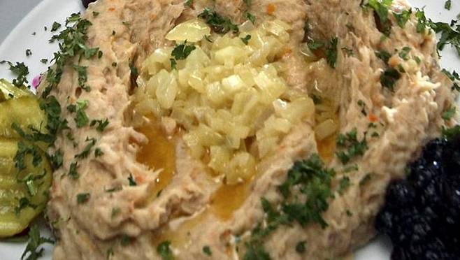 Leikkaa naudanpaistista reilua peukalonpään kokoista palaa, leikkaa myös porsaan siivutettu kylki tulitikkuaskin kokoiseksi palaksi. Kuumenna pannu, lisää hieman öljyä ja ruskista hyvin lihat kauttaaltaan. Laita tämän jälkeen kattilaan vettä, kunnes lihat peittyvät. Lisää suola, maustepippuri ja laakerinlehti joukkoon. Keitä hymyillen, kunnes lihat alkavat kypsentyä ja murentua, noin 45–60 minuuttia. Lisää hieman vettä, sekä leikatut juurekset ja keitä hiljalleen vielä noin 20–30 minuuttia, kunnes kaikki on kypsää. Soseuta tämän jälkeen voimakkaasti, kunnes syntyy sosetta. Tarkista maku ja tarjoile hienonnetun persiljan, voisulan, maustekurkkujen ja etikkapunajuurten kera. |