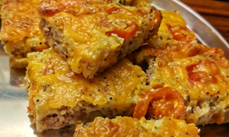 Sekoita kaikki ainekset keskenään, ja laita hetkeksi jääkaappiin turpoamaan. Kaada taikina leivinpaperilla vuorattuun vuokaan (itselläni on 20x20cm vuoka) ja ripottele pinnalle haluamiasi täytteitä. Tässä oli cheddar-raastetta, paistettua jauhelihaa ja kirsikkatomaattiviipaleita. Uuniin 175 astetta n. 30-35 min. Anna vetäytyä jonkin aikaa vuoassaan ennen leikkaamista. |