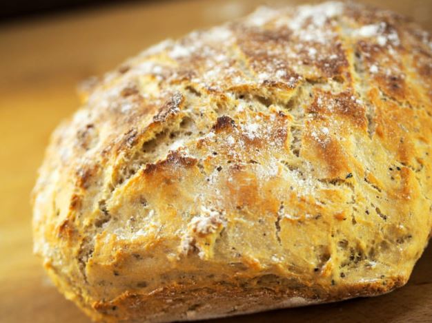 Sekoita erillisessä astiassa oliiviöljy, tomaattipyree, valkosipulijauhe, suola ja pizzamauste keskenään niin että ovat tasainen massa. Sekoita hiiva ja sokeri lämpimään reilusti kädenlämpöisen maitoon, anna hiivan herätä 10 min. Lisää 4 dl vehnäjauhoja, sekoita haarukalla kunnes seos on tasaista, lisää rasva/mausteseos ja vähitellen 5 dl vehnäjauhoja jatkuvasti sekoittaen kunnes taikina irtoaa reunoista, älä vaivaa! Peitä astia kelmulla ja anna kohota 40-50 min (kohoaa voimakkaasti) Laita pata tai syvä vuoka kylmään uuniin ja anna uunin lämmetä 225 asteeseen. Nosta kuuma astia uunista ja kaada siihen jauhotettu taikina (taikinan irrottaminen kohotusastiasta helpottuu jos teet sen jauhotuilla käsillä) taikinapalloa ei pidä muotoilla vaan se jätetään pataan sellaisena kun se sinne kaadettiin. Laita kansi pataan tai syvään vuokaan ja laita se kuumaan uuniin, anna leivän kypsyä kannen alla 25 min, poista kansi ja jatka kypsennystä kunnes leivässä on kaunis pinta (5-15 min). |