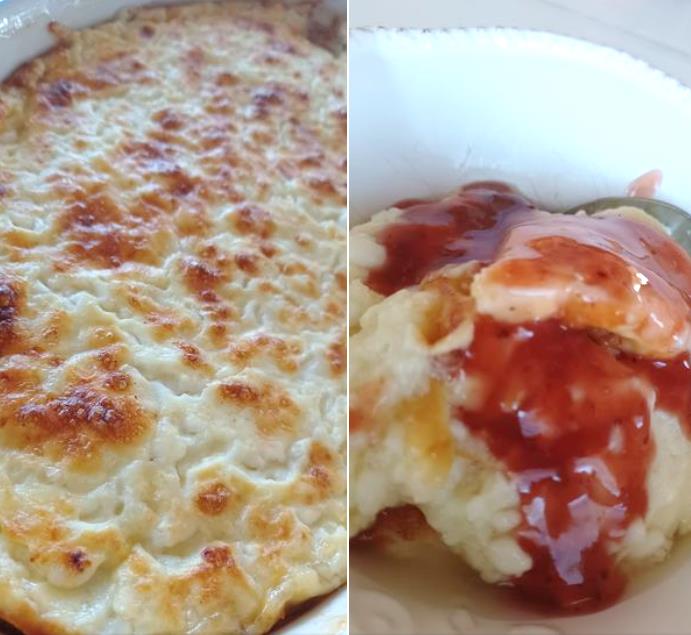Vatkaa munat ja sokerit keskenään. Lisää joukkoon jauhot, raejuusto, rasva ja maito ja sekoita hyvin. Kaada uuninkestävään voideltuun vuokaan (halkaisija 25-28 cm) ja paista 175 asteessa noin tunti. Nauti lakka- tai vadelmahillon kera. |
