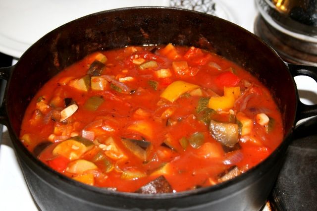 Siivuta munakoiso 1,5 cm siivuiksi ja ripottele suolaa siivujen päälle. Paista sipulit ja jauheliha, lisää ne kattilaan jossa on tomaatit, kuutioidut paprikat ja lihaliemikuutio. Kuivaa munakoison viipaleet, kuori ne ja kuutioi. Lisää munakoisokuutiot ja mausteet kattilaan ja keitä hiljalleen 40 - 50 minuuttia. |