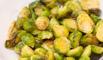 Leikkaa ruusukaaleista kannat pois ja hakaise ne. Pyörittelu ruusukaalit grillauskastikkeessa. Mausta suolalla ja pippurilla.