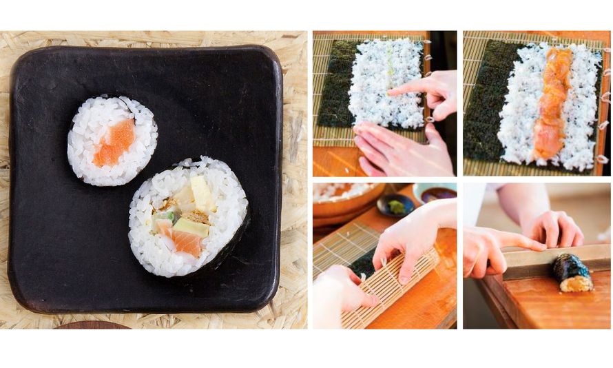 Keitä riisi ohjeen mukaan. Käytä makirullien pyörittämiseen bambumattoa, päällystä bambumatto ensin tuorekelmulla.. Aseta nori- eli leväarkki bambumaton päälle karhea puoli ylöspäin. Kastele kädet ja levitä ohut kerros riisiä kevyesti painellen leväarkin päälle. Jätä arkin leveästä reunasta noin 1/3 paljaaksi. Vedä ohut wasabiraita leveys-suunnassa riisin päälle keskelle (tai käytä Wasabin tilalla punajuuri-piparjuurisaattia tai chilimajoneesia). Leikkaa kurkusta, surimista ja avocadosta suikaleita, Asettele täytteet wasabiraidan päälle. Kastele paljaaksi jäänyt leväarkin pää kevyesti vedellä, jotta rulla pysyy kiinni. Rullaa arkki bambumaton avulla napakaksi rullaksi. Jätä sauma alaspäin. Kastele veitsen terä veteen ja leikkaa rulla siivuiksi juuri ennen tarjoilua. Laita rullat tarjolle leikkuupinta ylöspäin ![]() Video: Sushirullan valmistaminen |