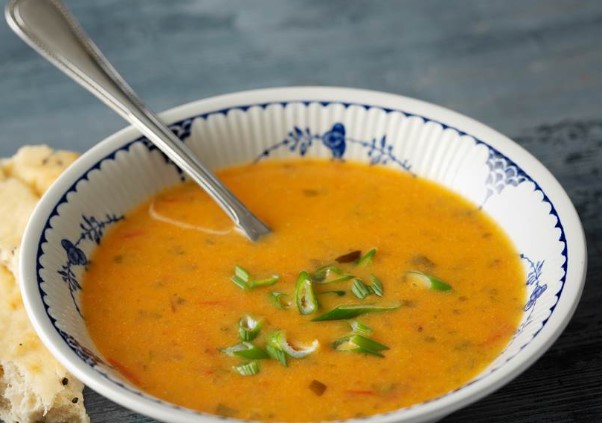 Soseuta sauvasekoittimella tai monitoimikoneessa. Hienonna basilika. Lisää keittoon basilika ja tuorejuusto, anna kiehahtaa.